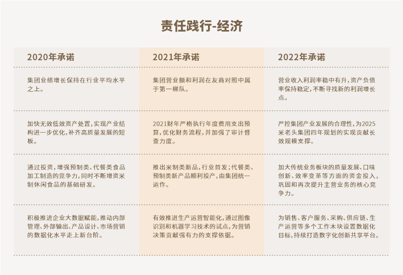 從2020年疫情后,米老頭集團上下積極面對來(lái)自大環(huán)境的多方面挑戰,探索和捕捉更寬廣的發(fā)展可能,我們以“健康、安心、鼓勵、持續”為精神理念,以“知識產(chǎn)權,超越自我”為戰略目標,按照“把握休閑食品制造實(shí)力,打造泛食飲行業(yè)鏈主龍頭”的發(fā)展模式,致力于實(shí)現倍量規模增長(cháng),經(jīng)營(yíng)效益高回報,加快促進(jìn)食品生產(chǎn)由“生產(chǎn)導向”向“消費導向”的轉變。在行業(yè)細分品類(lèi)中占據了領(lǐng)導品牌地位,為中國快消食品行業(yè)的發(fā)展貢獻了力量與智慧。